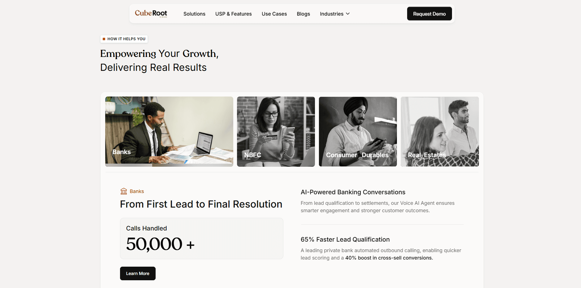 CubeRoot’s Voice AI platform enables enterprises to manage large-scale inbound and outbound voice communications using intelligent automation and multilingual capabilities. Designed for banks, NBFCs, consumer durables, and real estate enterprises, it empowers businesses to deliver human-like, scalable conversations powered by a proprietary tech stack.